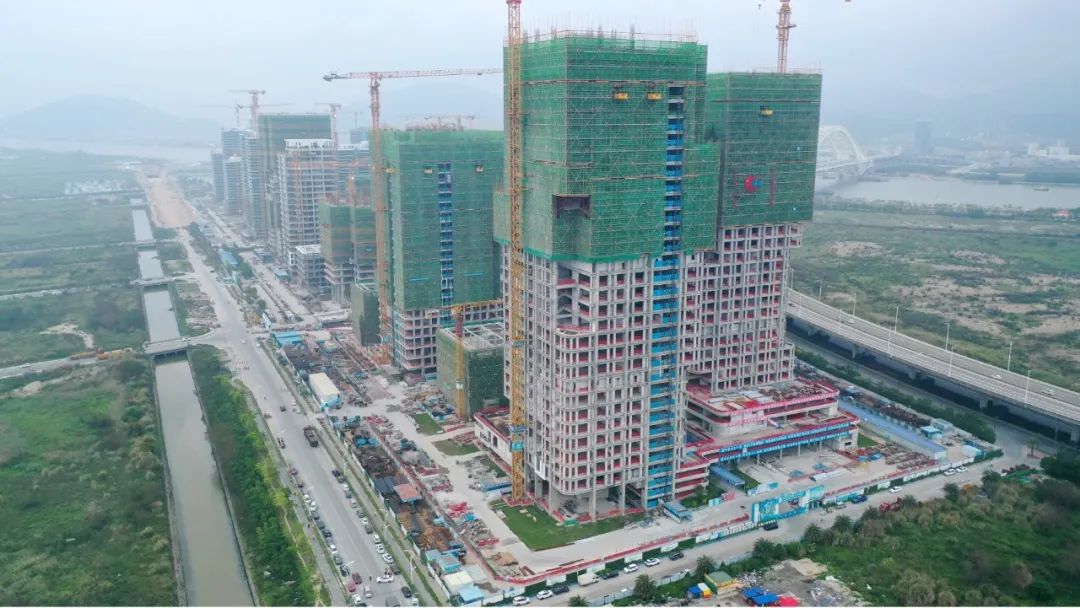 2023年4月25日,由大橫琴置業(yè)有限公司投資建設(shè)的橫琴科學(xué)城(二期)標(biāo)段二項(xiàng)目迎來首棟SA4號(hào)樓138.8米超高層結(jié)構(gòu)封頂,同時(shí)也是橫琴科學(xué)城產(chǎn)業(yè)園首棟超高層封頂,項(xiàng)目至今已累計(jì)完成6棟結(jié)構(gòu)封頂,接下來將進(jìn)入全力沖刺剩余3棟SA1、SA2、SA3號(hào)樓超高層(其中最高棟SA3號(hào)樓為180米)結(jié)構(gòu)全面封頂階段。