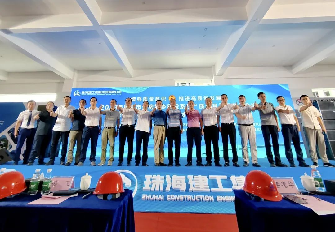 珠海市住房和城鄉(xiāng)建設(shè)局四級調(diào)研員孫飛,金灣區(qū)住房和城鄉(xiāng)建設(shè)局黨組成員梁德華,金灣區(qū)市場監(jiān)督管理局一級主任科員殷電軍,金灣區(qū)建設(shè)工程質(zhì)量監(jiān)測站站長王武,金灣區(qū)住房保障中心主任劉柳亮,珠海市建筑業(yè)協(xié)會王愛志,珠海市聯(lián)港城建公司副總經(jīng)理曹云,珠海市建筑設(shè)計院監(jiān)理部總經(jīng)理宋祖興,珠海建工集團黨委書記、董事長黃如華等單位及領(lǐng)導(dǎo)出席活動儀式,市、區(qū)建筑領(lǐng)域200余人參加觀摩學(xué)習(xí)。會議由珠海建工集團黨委委員、總經(jīng)理助理李純剛主持。