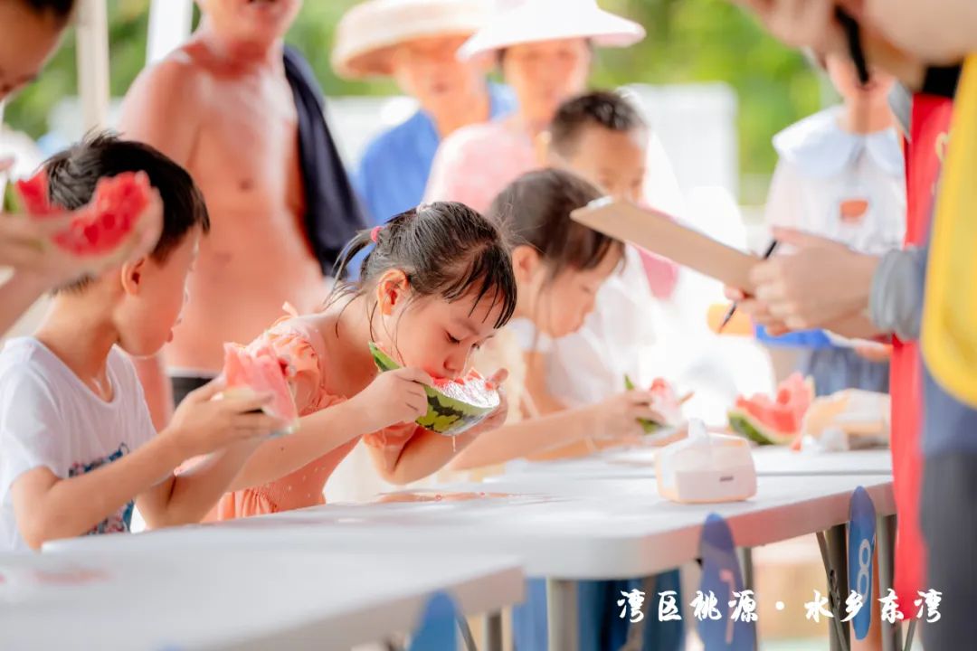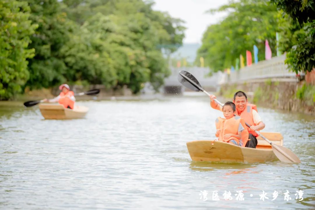 隨后,現(xiàn)場的水車伴著歡笑聲噴灑出陣陣水霧,也標(biāo)志著此次“東灣夏日清涼大作戰(zhàn)”活動正式開始。在接下來的兩天時間里,活動將充分結(jié)合東灣村民俗文化和稻田、河涌等良好的生態(tài)環(huán)境基底,通過農(nóng)艇競渡、趣味戲水、非遺剪影、東灣美食、清涼集市等元素,將傳統(tǒng)鄉(xiāng)村元素與現(xiàn)代競技、活動相融合,打造一系列清涼刺激的互動體驗(yàn)?;顒有问截S富多樣,既有團(tuán)隊(duì)合作的競技項(xiàng)目,也有輕松愉快的趣味游戲,還有特色清涼集市供游客休閑購物,可謂是“面面俱到”。