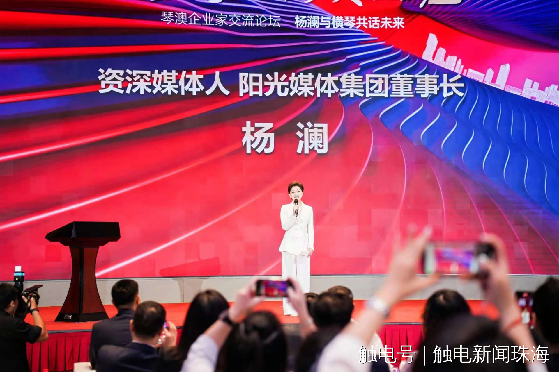 9月22日,由橫琴粵澳深度合作區(qū)(以下簡(jiǎn)稱“合作區(qū)”)經(jīng)濟(jì)發(fā)展局支持,大橫琴集團(tuán)、叡智蓮花公關(guān)服務(wù)有限公司聯(lián)合主辦的“潮涌大灣區(qū)·琴澳企業(yè)說”琴澳企業(yè)家交流論壇活動(dòng)成功舉辦。繼“潮涌大灣區(qū)·澳門青年說”論壇后,大橫琴集團(tuán)再次攜手資深媒體人、陽(yáng)光媒體集團(tuán)董事長(zhǎng)楊瀾女士,匯聚來自新能源、科技材料、人工智能等各行各業(yè)共500多位代表和嘉賓,共議企業(yè)家時(shí)代策略,共繪琴澳發(fā)展新篇章。合作區(qū)民生事務(wù)局局長(zhǎng)黃宇杰,大橫琴集團(tuán)黨委副書記、董事、總經(jīng)理王宇聲,資深媒體人、陽(yáng)光媒體集團(tuán)董事長(zhǎng)楊瀾,澳門大灣區(qū)金融商會(huì)創(chuàng)會(huì)主席李偉杰,大橫琴集團(tuán)副總經(jīng)理姜平等領(lǐng)導(dǎo)嘉賓出席活動(dòng)。