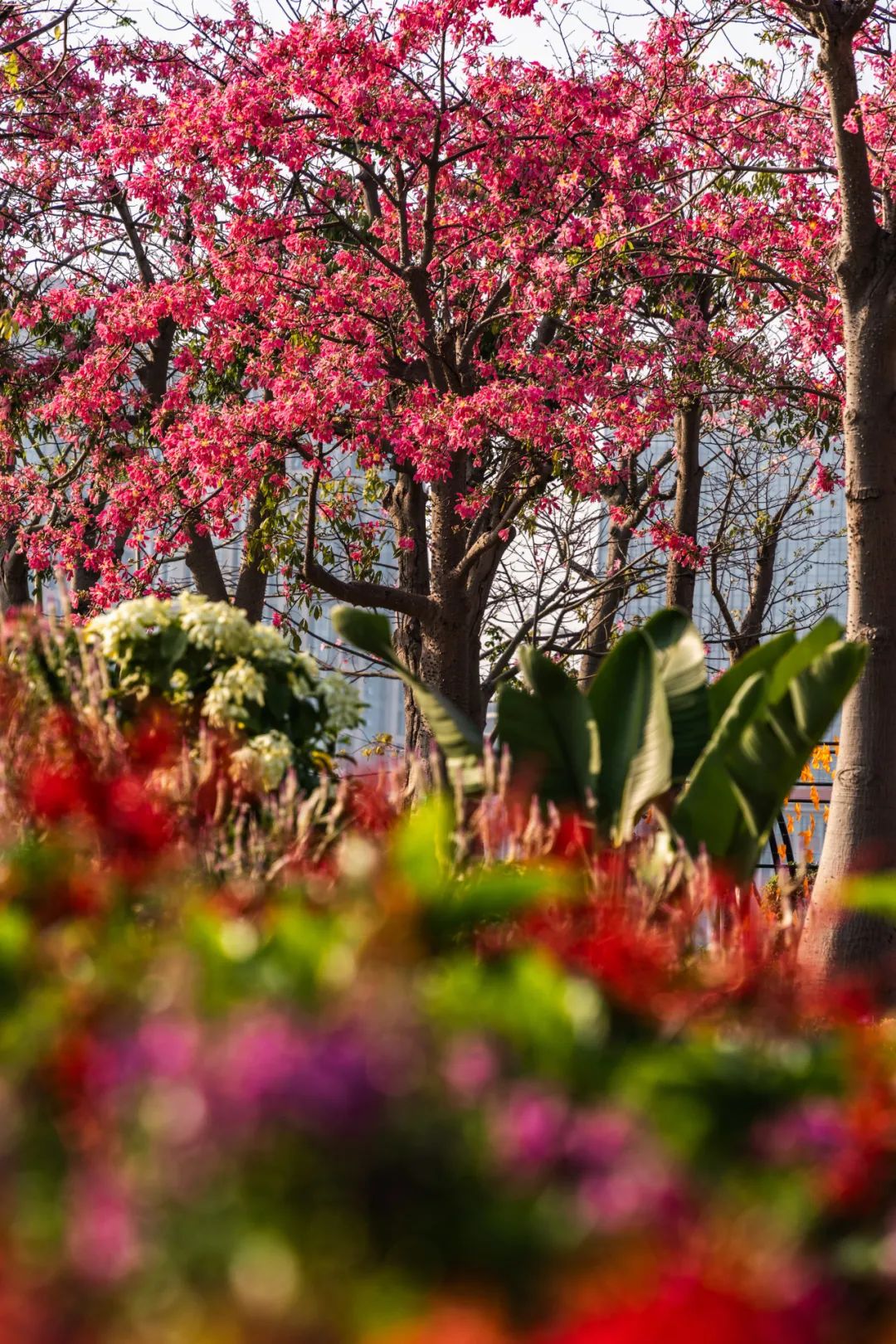 花期來臨前,大灣區(qū)一帶經(jīng)歷了較長的雨季,琴建公司及時采取應(yīng)急措施,科學(xué)調(diào)整養(yǎng)護(hù)方法,充分利用雨水對花苗的滋養(yǎng),為花海的盛開奠定了基礎(chǔ)。最終,盛放的美麗異木棉連綿不絕,乃是花海長廊對琴澳居民最好的饋贈。