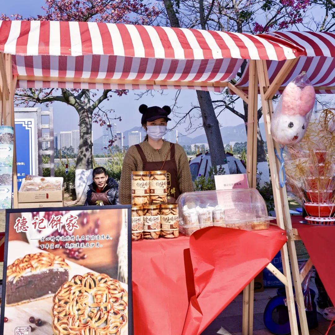除此之外,每逢周末,一號、二號和三號驛站開展東灣墟市活動,斗門蓮洲鎮(zhèn)東灣村農(nóng)產(chǎn)品市集走進(jìn)花海,帶來優(yōu)質(zhì)的本地產(chǎn)綠色農(nóng)產(chǎn)品、特色手工糖水和農(nóng)副產(chǎn)品、非遺點心小吃等,吸引了大批市民游客上前詢問和購買。游客在享受美景、體驗美食之旅的同時,亦促進(jìn)了鄉(xiāng)村振興與滿足城鎮(zhèn)消費需求的良性循環(huán),鄉(xiāng)村市集在花海煥發(fā)出了新活力。