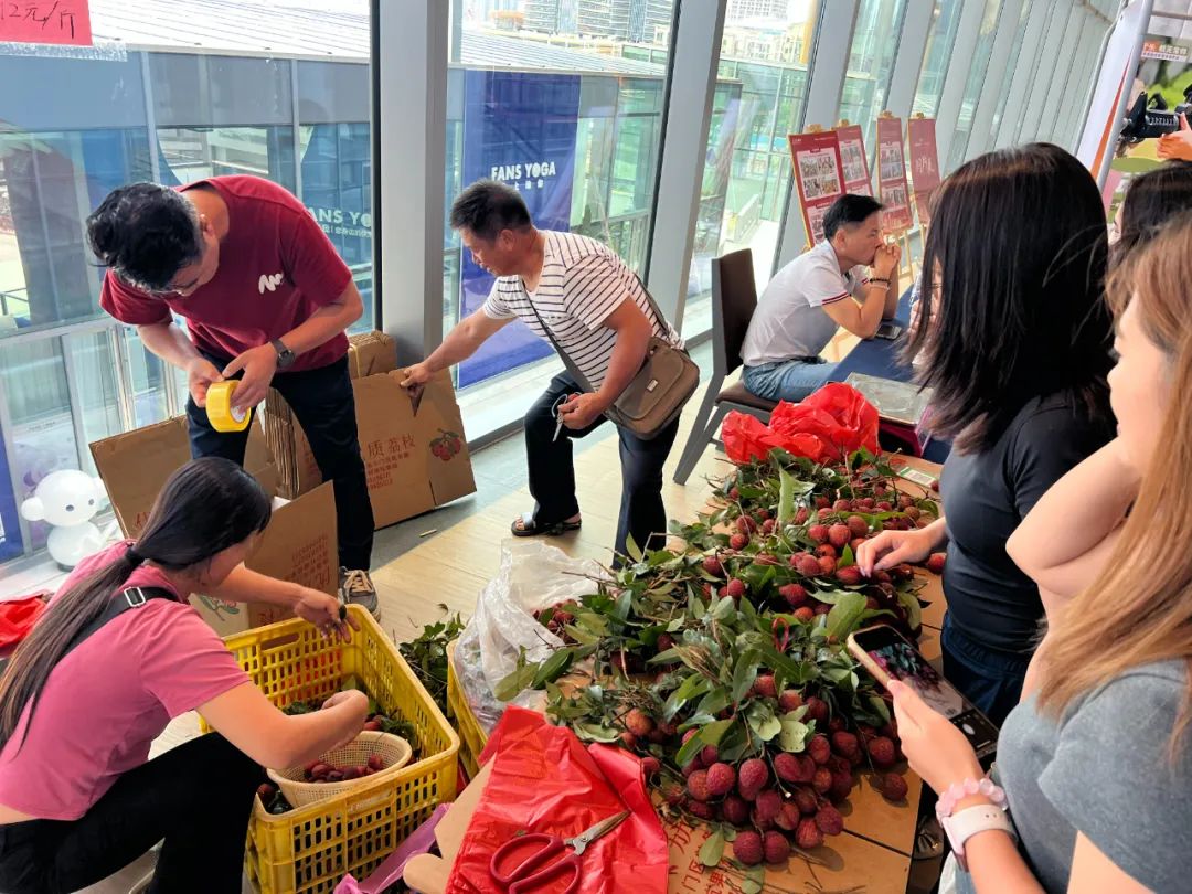 充分利用集團(tuán)內(nèi)部資源及社會(huì)網(wǎng)絡(luò),采取“線上+線下”雙軌并行模式。一方面,開展“斗門好物進(jìn)珠光”特色農(nóng)產(chǎn)品展銷活動(dòng),通過新品嘗鮮、上門推廣、組合套餐優(yōu)惠,給與員工福利的同時(shí),增強(qiáng)廣大職工對(duì)鄉(xiāng)村特色產(chǎn)品的認(rèn)知,持續(xù)性面向員工及合作企業(yè)開展愛心團(tuán)購;另一方面,依托電商平臺(tái)及社群營(yíng)銷進(jìn)行線上推廣,聯(lián)動(dòng)蓮花茶、豬腳姜、微豆酸奶等本土農(nóng)特產(chǎn)品及民宿、景區(qū)整合營(yíng)銷,推動(dòng)蓮洲荔枝“走出去”。通過多措并舉,僅員工團(tuán)購及線上銷售已超3000斤。