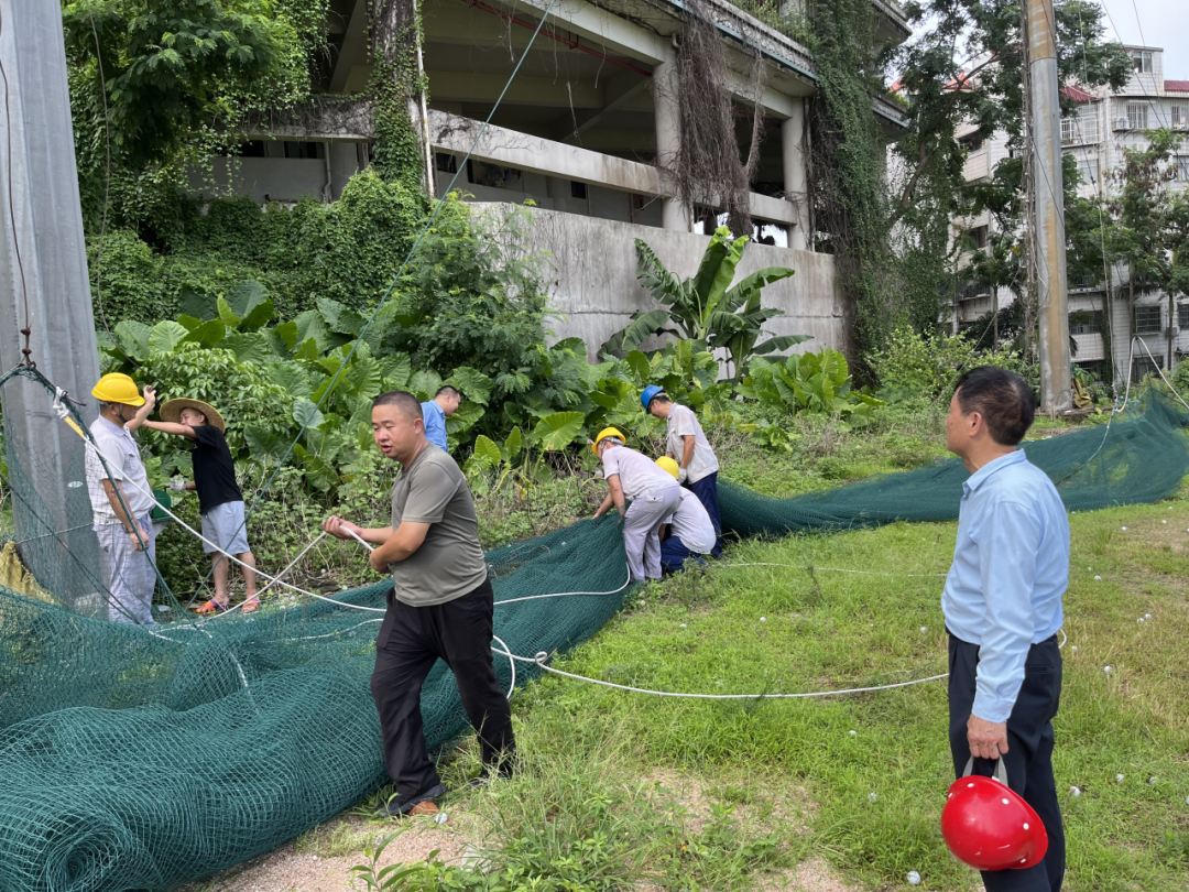 寶鷹建科迅速組織對所有在建項目的大型機械設(shè)備、工地的活動板房(辦公區(qū)、生活區(qū))、圍擋、加工棚、安全網(wǎng)等臨時設(shè)施進(jìn)行全面檢查和加固。對所有工地的臨時用電線路、配電箱(柜)進(jìn)行排查,臺風(fēng)來臨前切斷除應(yīng)急照明、排水設(shè)備外的所有非必要電源,防止觸電和電氣火災(zāi)事故。