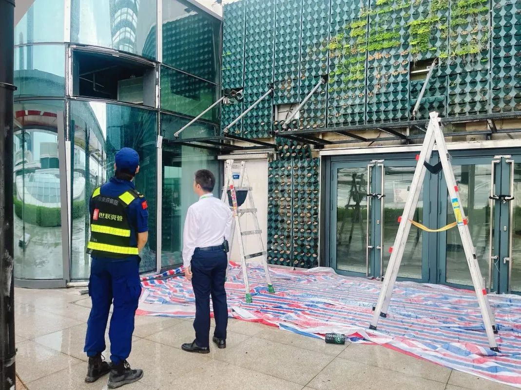 一是對園區(qū)內(nèi)所有建筑物門窗關(guān)閉情況進(jìn)行檢查,安排人員上門協(xié)助企業(yè)客戶關(guān)閉門窗并建立留存企業(yè)應(yīng)急聯(lián)系人聯(lián)系方式。二是對園區(qū)內(nèi)種植樹木進(jìn)行檢查,已加固并將過多過長的樹枝修剪858余棵。三是清理各建筑物樓頂天面雜物,疏通天面下水系統(tǒng);檢查各區(qū)地面排水井道,清理井內(nèi)雜物。四是放置防汛沙袋2200包至園區(qū)電梯、展廳處、天面、商鋪入戶門、樓層連廊、地庫入口等重點部位。五是收回園區(qū)室外水馬、鐵馬、雪糕筒、拒馬、商業(yè)外擺、煙灰缸、垃圾桶、花箱、一米欄、國旗等室外可移動物品約500個。六是協(xié)助企業(yè)客戶搬運外擺花箱、休息桌椅、太陽傘物品約20余套。七是發(fā)出臺風(fēng)預(yù)警信號溫馨提示6宗。八是關(guān)閉斗門大橫琴5.0產(chǎn)業(yè)新空間C區(qū)及橫琴國際科技創(chuàng)新中心4幢運動中心。九是啟動橫琴國際科技創(chuàng)新中心9號樓應(yīng)急避難場所1處,接收避難工人534 人。備用斗門大橫琴5.0產(chǎn)業(yè)新空間應(yīng)急避難場所G1、G2、G3廠房3處,以滿足園區(qū)防御工作需要。