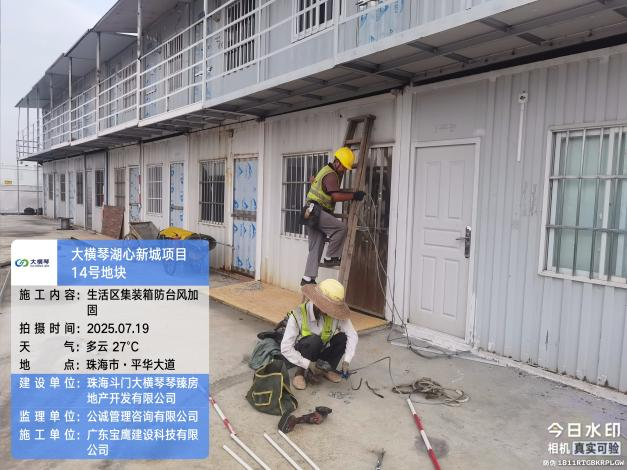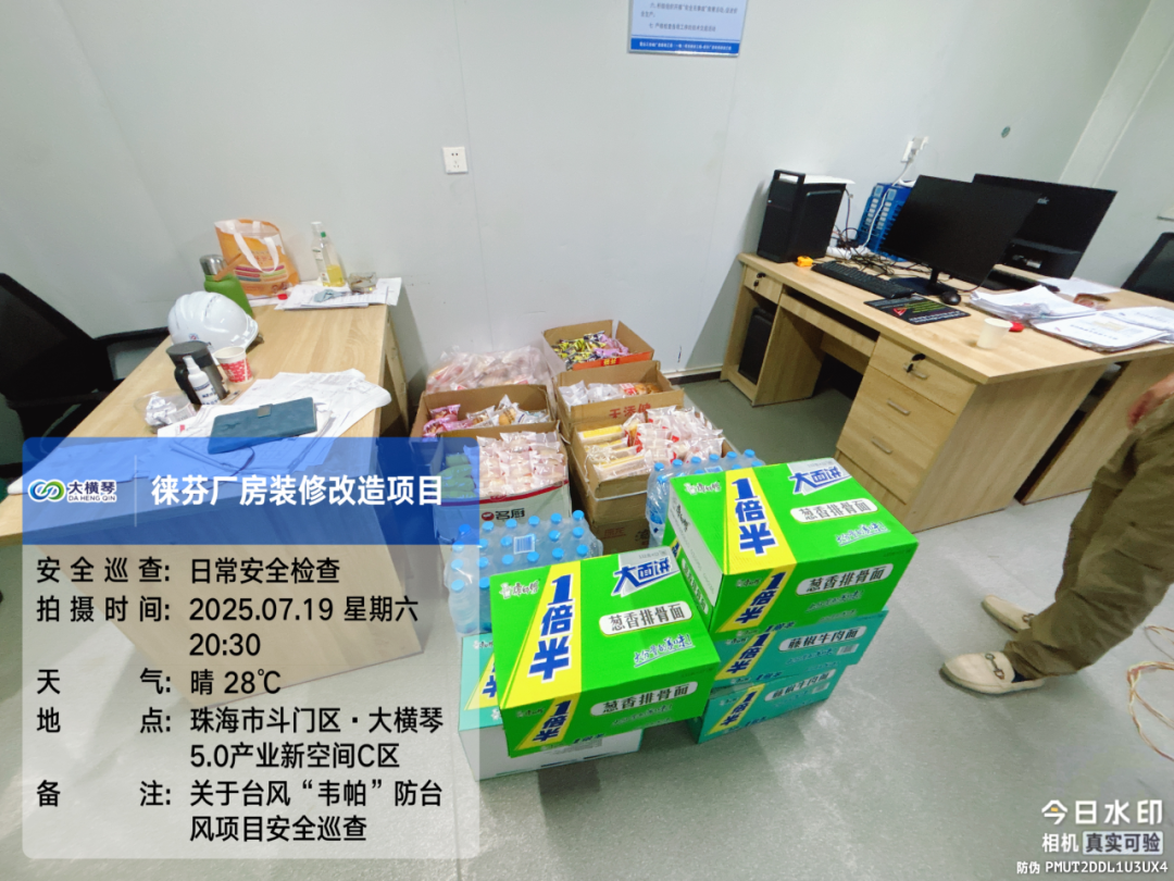 大橫琴置業(yè)公司提前統(tǒng)計各建設(shè)項目的臨險人員數(shù)量,提前踏勘轉(zhuǎn)移安置場所。7月19日16點,組織所有項目避險人員在18點前全部迅速轉(zhuǎn)移、不漏一人。在建項目臨險人員約4286人,各項目落實了應(yīng)急轉(zhuǎn)移安置場所,充分準(zhǔn)備了物資、食品運輸?shù)礁黜椖勘茈y場所,組織大巴車接送工人,反復(fù)檢查確保項目施工現(xiàn)場、工人板房宿舍無一人留滯,應(yīng)急轉(zhuǎn)移場所里安排了值班值守維持秩序,禁止私自外出。