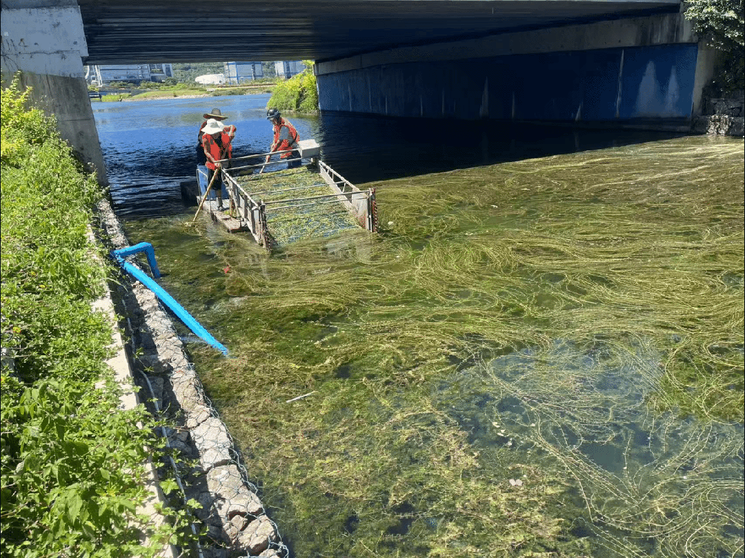 針對不同區(qū)域的水草特點(diǎn),精準(zhǔn)施策:大面積區(qū)域用機(jī)械打撈船快速收割;淺灘水草由專人下水割草;零散水草由保潔船只人工打撈;水面漂浮的斷根水草及浮萍,則利用攔污排攔截,防止擴(kuò)散。